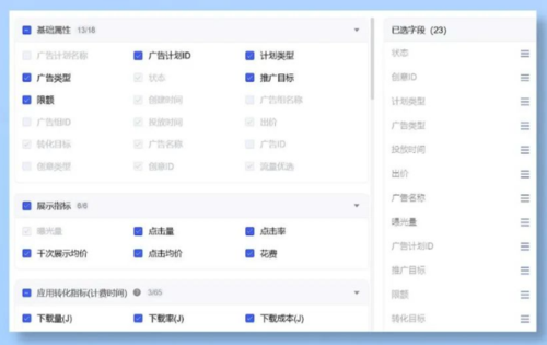 操作优化:①支持已选字段排序②支持按账户配置指标本地保存。