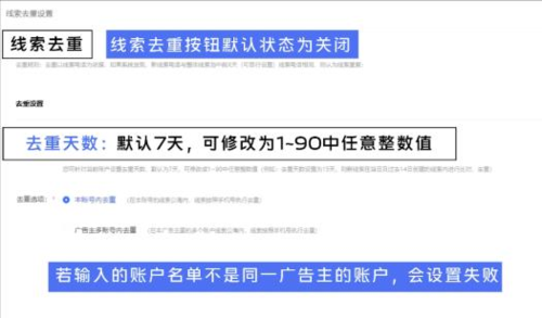 2.适用场景:帮助广告主完成单个账号或多账户(同一主体)维度的线索去重。