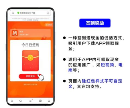 1.功能描述:新增3种互动下载组件类型,含4种样式:签到奖励红包、聊天红包、九宫格抽奖、大转盘抽奖。