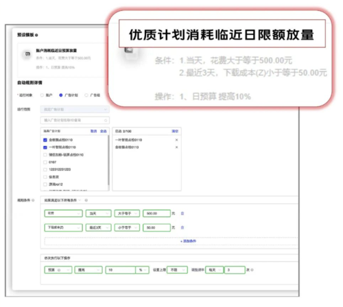 新增消耗临近日预算、日限额放量预设模板