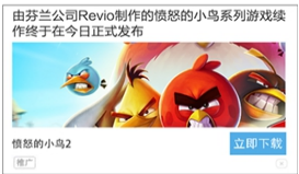 推广感受:两种广告方式,大图的点击率明显更多些,但小图的点击量也很大,用户下载并注册的人也有很多。
