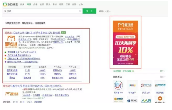 2014年5月,在P2P高速发展浪潮中,爱钱进以行业清泉的姿态出现,两年内,公司规模不断扩大。面对日益增长的市场推广需求,爱钱进需要寻找一个符合其安全定位的广告投放平台。作为以安全著称的互联网公司,360推广与爱钱进在品牌调性与投放需求上一拍即合。相比第一梯队互联网金融平台,爱钱进的知名度和影响力尚显不足,面对数量庞大的搜索网民,需要针对不同阶段人群使用不同的营销策略。面对这些挑战,爱钱进提出了二大营销目标: