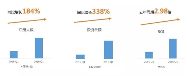 2016年,360推广为爱钱进实现了注册人数同比增长184%,投资金额同比增长338%,ROI达到上一年同期的2.98倍,而CPC成本却有效降低了¥1.1,并且广告投放的数字和效果仍然在持续增长中。