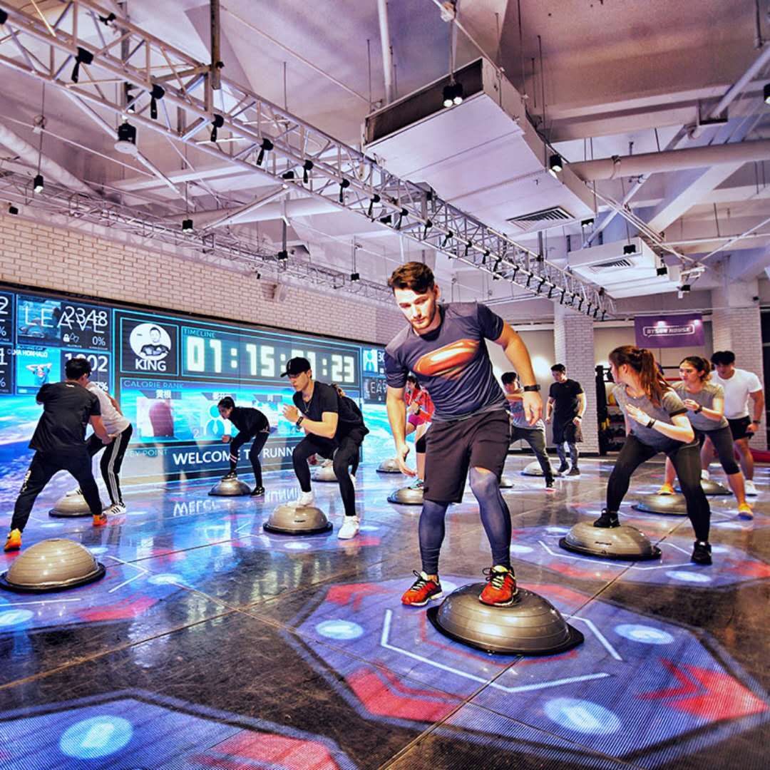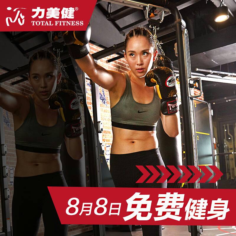 图片通过展现学员们标准且统一的健身动作,和时尚的健身环境,给用户以专业、高端的感受。