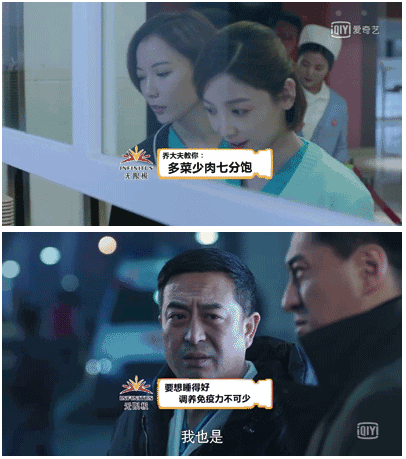 没有突如其来的轰炸式弹幕,没有无关紧要的强行植入,爱奇艺将无限极与剧情场景相结合,根据当下“健康”需求进行温馨提示,比如“对健康负责”“调养免疫力”、“多菜少肉七分饱”等等的提示,都巧妙地传达了无限极对观众健康的关注,没有尴尬没有不相关,一切来的真是刚刚好!