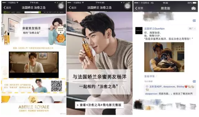 片中除了男女主角使用娇兰产品的特写镜头外,还多次提到蜂蜜尤其是法国的黑蜂蜜所具有的神奇治愈功效,甚至是“治愈之岛”乌埃尚岛的诗意带入,都在气质上与影片浑然一体,既有爱情主题的“蜜意”,也不失品牌内涵的“文艺”。