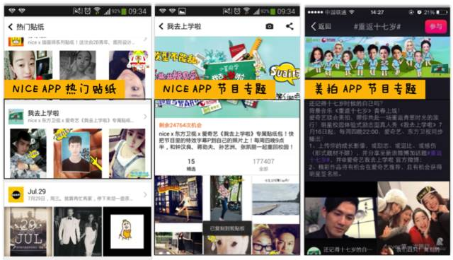 我们还承包了像NICE贴纸和美拍这类APP,让节目爆笑语录占领学生们日常生活,让他们随时随地都能和节目互动起来。