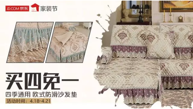 • 洞察力:“买四免一”重点信息放大突出,利用用户喜爱优惠心理,吸引用户点击;“四季通用 欧式防滑沙发垫”直击产品卖点。
