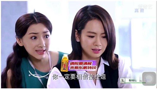 植入果展示:当工作中遇到棘手难题,东鹏君提醒杜拉拉“遇险需清醒,来瓶东鹏特饮”。