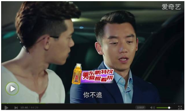 此次合作,爱奇艺为东鹏特饮挑选多部爆款大剧,通过Video out智能识别技术的升级版技术‘Figure out’技术智能找出剧中与品牌匹配度高的人物行为动作和剧情桥段,并采用Video in的升级版技术Video in+进行智能广告植入,配上创意文案巧妙地与剧情呼应,带出东鹏特饮“年轻就要醒着拼”的品牌诉求。商品以动画效果展现更抓眼球,与传统打点广告相比更显个性。