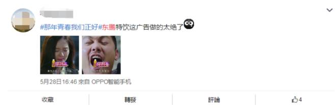 植入效果展示:当剧中角色在情感中受挫,东鹏君衷心祝福 “东鹏特饮祝你找到更好的”。