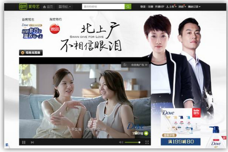 2015年女性励志大剧《北上广不相信眼泪》在爱奇艺视频火爆荧屏。为了能够快速引爆新品声量,我们在爱奇艺视频上开设专题页面,将多芬品牌与剧集内容紧密绑定,通过架设包括首页焦点图、专题页面、视频前贴片、视频角标等多种互动形式,帮助多芬与受众进行有效沟通!