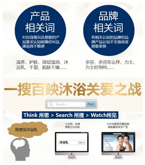 “一搜百映”依托百度独家大数据支持,定向目标人群的核心需求,将品牌TVC推送给精准品牌T.A,提高用户对多芬新品认知度及回想度。