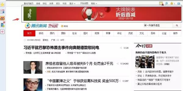 1)腾讯网有矩形大图、通栏两种广告形式,如下图: