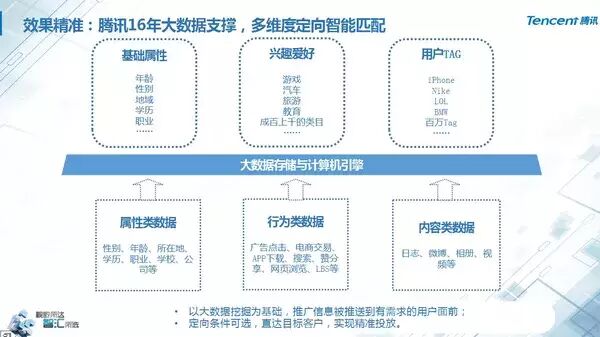 1、属于新媒体整合营销模式:整合腾讯资讯、娱乐、社交三大体系优质的移动和PC端资源,大内容+大数据=品效合一的广告。