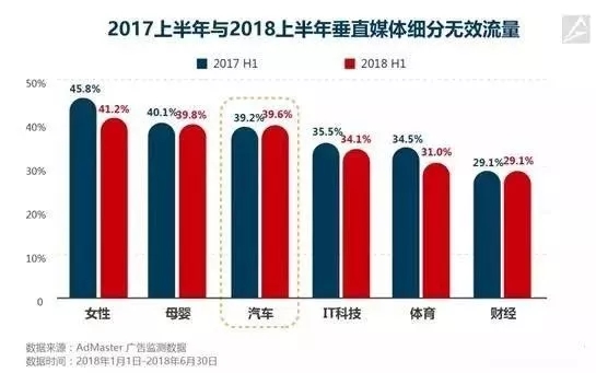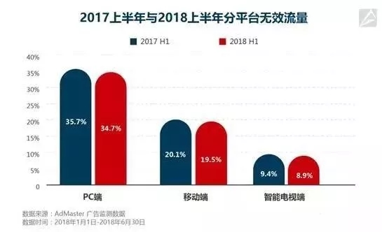 AdMaster刚刚发布了2018年上半年的数字广告无效流量白皮书。数据显示,2018 上半年,上千家广告主企业(行业范围涵盖快消、母婴、汽车、餐饮、金融、互联网等各行各业),无效流量占比为 28.8%,同比 2017 年上半年无效流量的占比 29.6%和 2016 年上半年无效流量的占比 30.4%,虽逐年有小幅下降,但形势依然严峻。