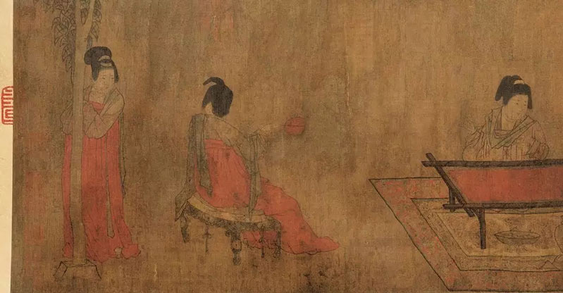 我们看唐朝周昉的《挥扇仕女图》(上图)的最后一部分:一位后宫的宫女,我不知道她是不是一个失败的甄嬛。她靠在一棵梧桐树上回头看,画卷到这里也就结束了。