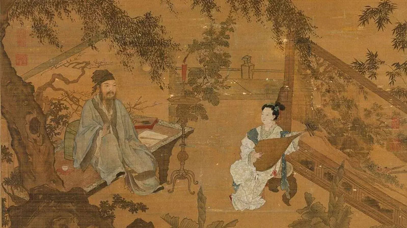 明代唐伯虎的《陶榖赠词图》(上图)中的这个陶榖,是一个看上去特别道貌岸然的家伙,但是他看见了美女,也要晚上点着蜡烛听琵琶。