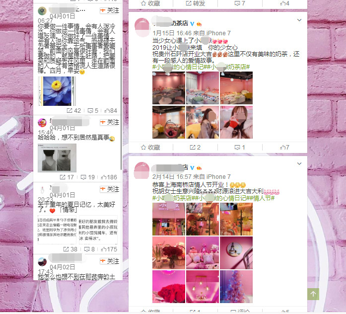 如下图,是一个奶茶加盟店官微。从兔子的截图上来看,它的头像、背景图、甚至日常微博风格都是粉丝系,整体品牌调性高度相关,我们更容易感知产品。