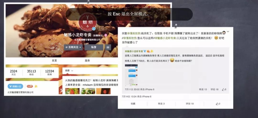 这个是魅惑小龙虾专卖店的微博,它会跟一些用户聊天,这其实是在告诉你,它就像一个真人一样活在你的身边,而不是一个所谓的机器人去运营一个官方账号。对话让账号更加拟人化。