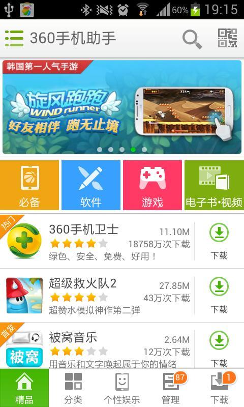 360手机助手作为360的主要产品,坐拥的用户达到6亿人次。不管是在PC端还是移动端,每天都有不同的用户下载大量的游戏、软件、音乐、小说、视频、图片。360手机助手还可以管理手机的资源,进行优质资源的一键安装,360手机助手是绿色无毒安全无忧的,为用户的程序管理提供方便。