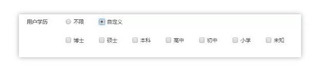学历定向分为博士、硕士、本科、高中、初中、小学和未知,可根据商品目标用户现在可能所处的学历情况进行选择。例如一些针对高等学历人群的教育服务,可以直接选择学历较高的人群进行投放。