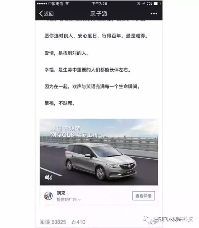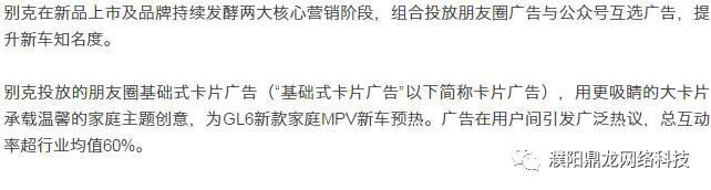 别克投放的朋友圈基础式卡片广告(“基础式卡片广告”以下简称卡片广告),用更吸睛的大卡片承载温馨的家庭主题创意,为GL6新款家庭MPV新车预热。广告在用户间引发广泛热议,总互动率超行业均值60%。