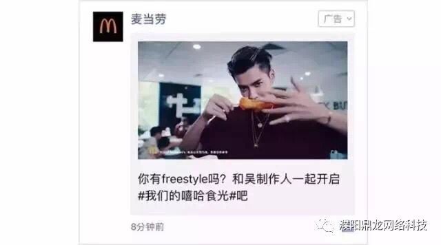 同时,麦当劳嘻哈小食系列,借助朋友圈卡片广告承载吴亦凡动态嘻哈创意,短时间内覆盖六千万目标人群,收获近两亿优质曝光。