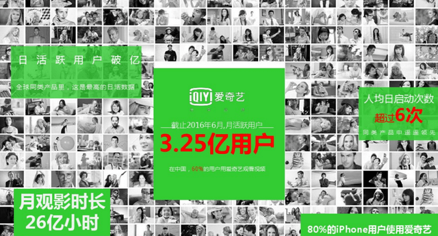 截止2016年6月数据统计,爱奇艺日活跃用户破亿,月活跃用户达到3.25亿用户,其人均启动次数超过人均6次。