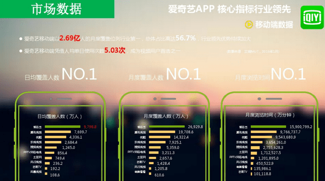 爱奇艺的移动端日均覆盖人数浏览时间最长。