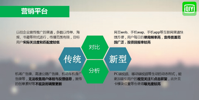 与传统的营销平台对比 ,爱奇艺等互联网渠道快捷方便,用户每日使用频率高,用户粘性强,转化高,广告主投资回报率高。