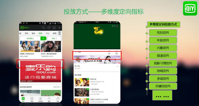 多维度投放方式,定向指标:可以根据不同性别,年龄,兴趣,频道栏目 地域,关键词等精准的定向。