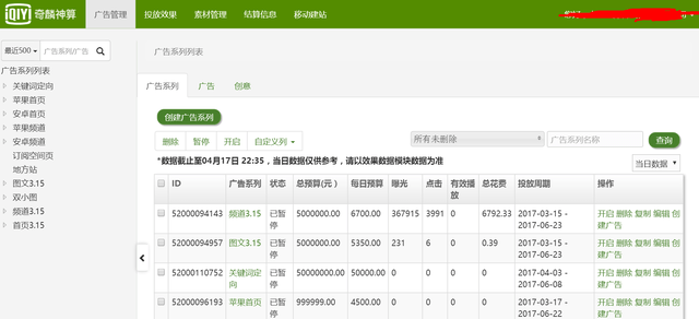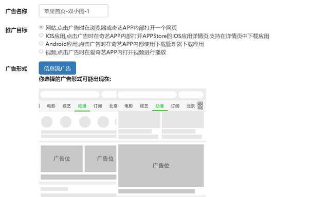 爱奇艺的帐户构成有:苹果,安卓端的关键词定向;首页推荐;频道页,图文视频关联;双小图通栏;订阅空间;地方站等广告系列。