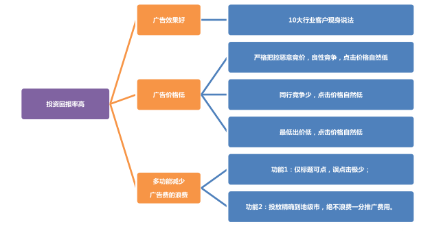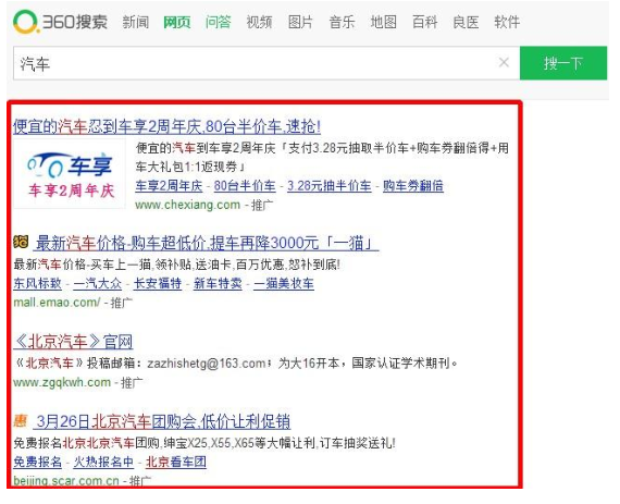 和竞品的某些展现,全部可点,都要收取企业客户的点击费用相比,360搜索推广,仅标题可点,这样不易产生误点击,企业的推广费用大大降低。