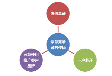 使用虚假套证企业恶意提高出价,真实客户推广结果无法展现或者推广成本过高。