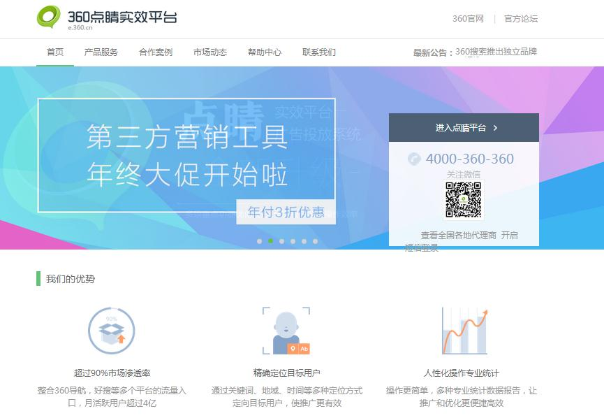360搜索目前已占据 30%以上的市场份额和持续增长的巨大后劲,使得企业推广能够得到很多的潜在客户,充满了商机,企业自然会非常感兴趣。