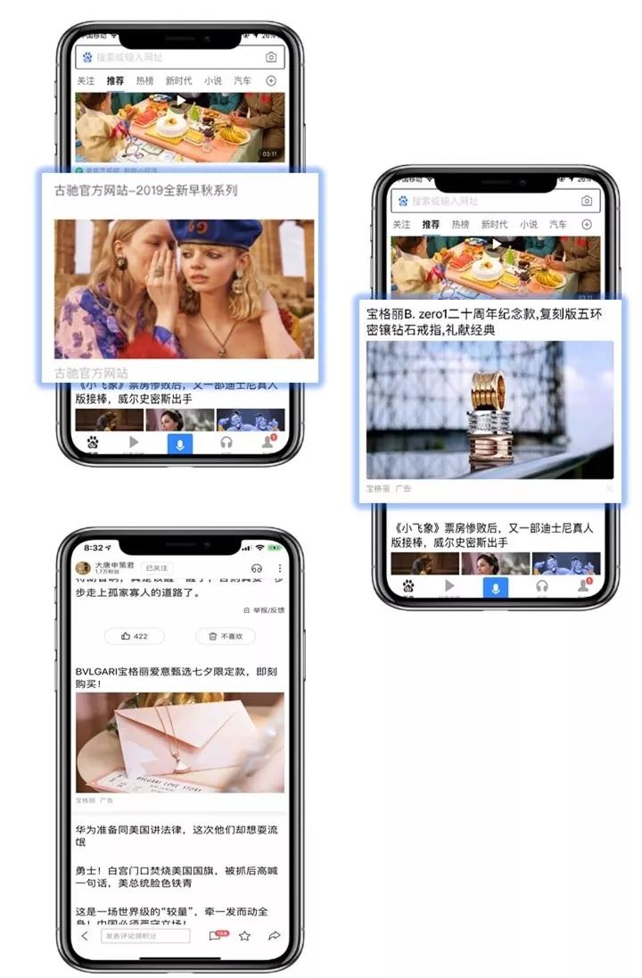 除了新联动形式,我们还有精美动静态开屏和信息流的多种样式,都非常受奢侈品行业的广告主大佬们青睐。