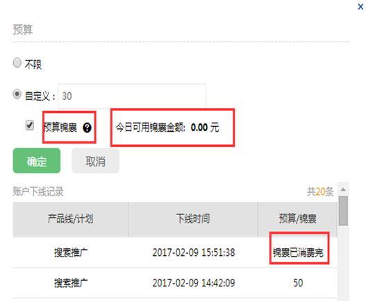 1、预算锦囊仅在360搜索推广产品线撞线后才会实际生效;