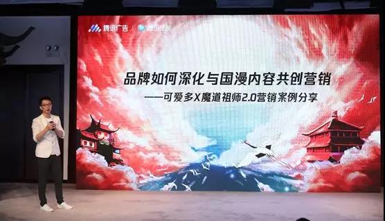 在内容营销领域,动漫品类具有独特的差异化价值,经过市场检验的现象级国漫IP频出,这也让它成为品牌营销的新蓝海。首先,动漫营销具有高性价比,相对于品牌竞争更加激烈的剧综爆款,动漫营销的低金额投入、高收益回报更能够帮助广告主提升营销ROI。此外,动漫营销的单IP品牌承载数量少,“干扰度”低,合作品牌的印记也将更加突出。 基于动漫用户黏性强、活跃度高及其独特的“站队”文化等特点,腾讯广告推广平台以“国漫IP”为核心,通过打通二次元和三次元的“2+3”营销模型为品牌赋能。腾讯广告推广平台垂直品类营销总监孔育昭介绍:“线上通过二次元的方式,以原生内容和品牌定制打造用户与IP、制作团队、品牌为一体的文化认同;线下通过三次元的方式,用人物代言、产品定制和消费体验为手段,带动价值转化——从而突破次元壁,打通线上线下消费体验的完整闭环,实现IP与品牌的无缝融合。▼腾讯广告推广平台垂直品类营销总监 孔育昭联合利华旗下和路雪品牌“可爱多”与超人气国漫《魔道祖师》的合作,是腾讯广告推广平台国漫营销“2+3”模型的代表案例。在线上,不仅有品牌定制TVC,更让漫画人物在中插广告中为品牌证言,实现了不违和的“零差评”露出;在线下通过虚拟人物代言、IP产品定制、高度还原漫画经典场景和道具的快闪店等形式,把用户对二次元IP内容的文化认同融入并转化为三次元场景下的消费,创造了可爱多“魔道祖师”系列产品销量破2.4亿、快闪店首日预约2800单以及日均顾客达1000人的营销效果。▼联合利华北亚区食品茶冰激凌品类副总裁 徐宇淙
