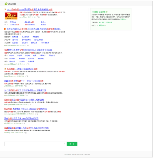 1. 对于同一主域名(如 www.so.com 的主域名为 so.com),在同一搜索结果页面上系统只展现一条推广结果。如果页面上已经展现您的网站主域名的某条推广结果,将无法看到自己其它的推广结果。