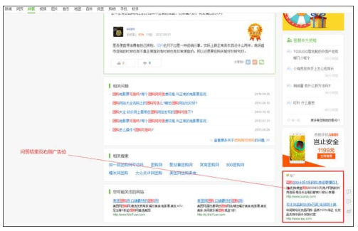 ★问答结果页广告位(图一):左侧展现 3 条,右侧无广告。左侧广告位:展现 3 条广告。