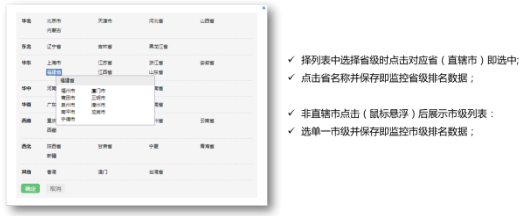 ★ 选择监控城市:看排名功能为分地域功能,可查看省级或市级排名信息