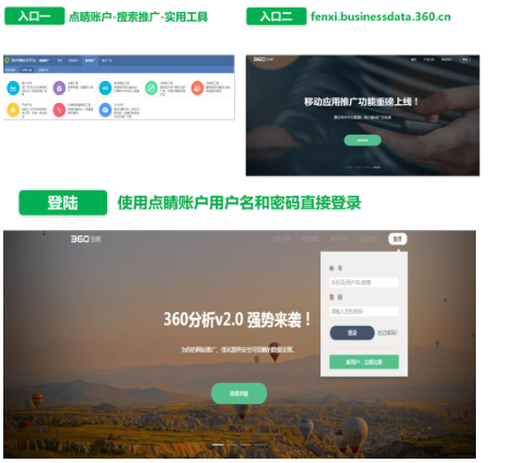 1. 注册:360分析工具已开放注册,注册网址:fenxi.businessdata.360.cn;点睛已有客户无需注册,直接登陆即可使用