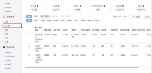 平台上推荐的统计工具,除了拥有市面其他统计工具的通用功能外,还能对客户在 360 推广带来的网站流量,进行更细化精准的统计和分析,结合点睛账号的效果数据,细化到从账户→计划→组→创意/关键词等多个维度的流量数据。