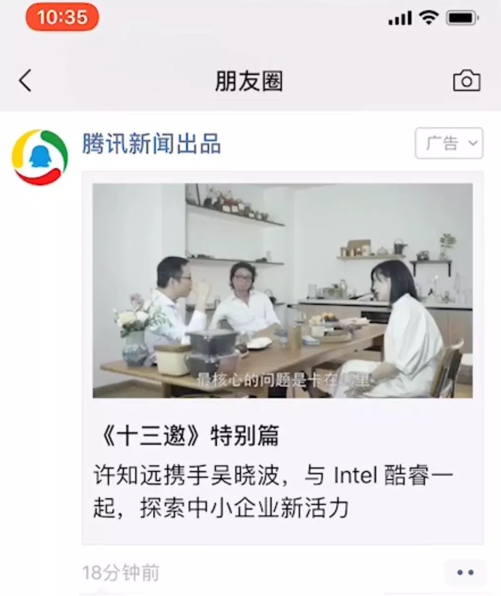 在腾讯新闻广告平台,品牌可以借力定制化内容有效触达高质群体,辅以多元垂直栏目,打通圈层壁垒。在本期《十三邀》夏日特辑中,英特尔的目标用户是一群对深度内容保有高关注的中小企业主,而这也与《十三邀》往期受众高度重合;再以开放真实的对话内容为英特尔科技实力背书。腾讯新闻以受众价值和内容价值高匹配的深度IP为核心抓手,不断探索契合品牌价值的营销机会点,助力品牌实现营销诉求。