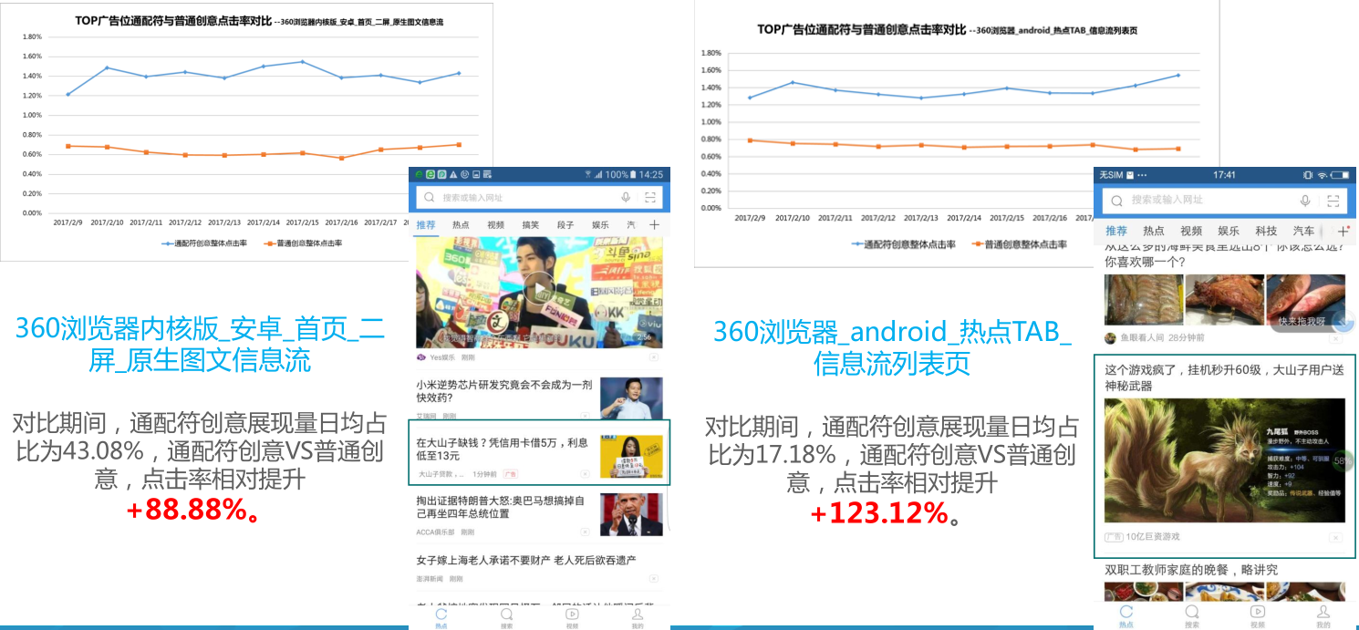 360移动信息流『地域通配符』可以根据每个浏览用户的地域,有针对性的在描述文案中增加地域信息,有效的提升360推广效果,提升创意CTR。