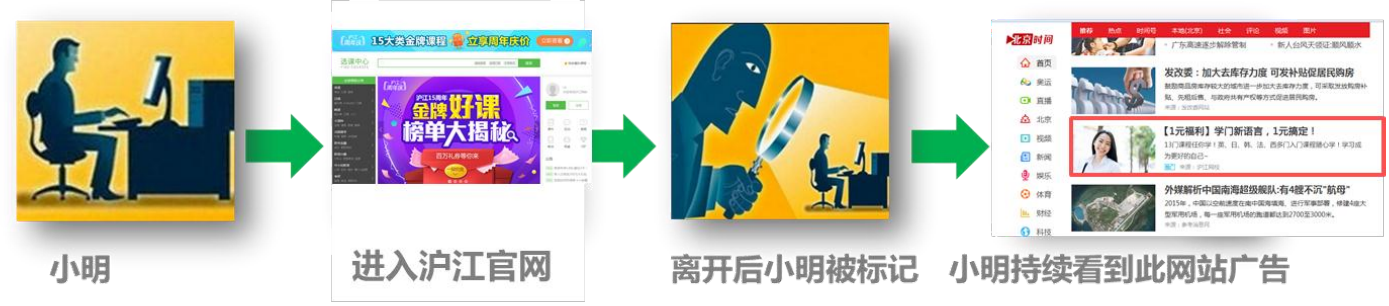 沪江网校主要受众为在校大学生,普通白领和家长这三类群体,不同群体所关注的重点相去甚进,如何避免曝光浪费,将面向不同群体的培训广告精准投放到该群体面前就显得十分重要沪江网校的策略是:在360PC信息流推广媒体上进行常规投放的同时辅以访客找回定向,网罗那些访问过官网、点击过沪江网校广告、浏览过相关课程的高转化意愿群体。如此一来,除了在曝光量上确保广泛辐射到尽可能多的用户,更能精准定向那些曾经对沪江诼程感兴趣癿访客群体。
