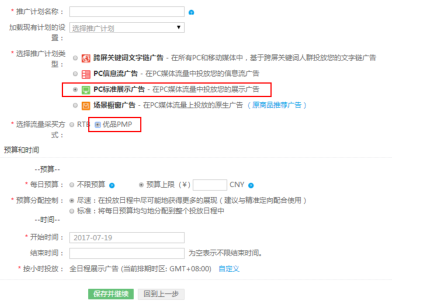 推广计划类型选择360PC标准展示广告”流量采买方式选择“优品 PMP”