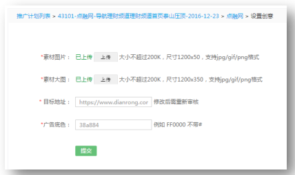 根据推广组中选择的资源的具体素材要求,上传相应的物料
