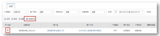 创意层级勾选需要实览的创意尺寸,点击创意实览按钮。